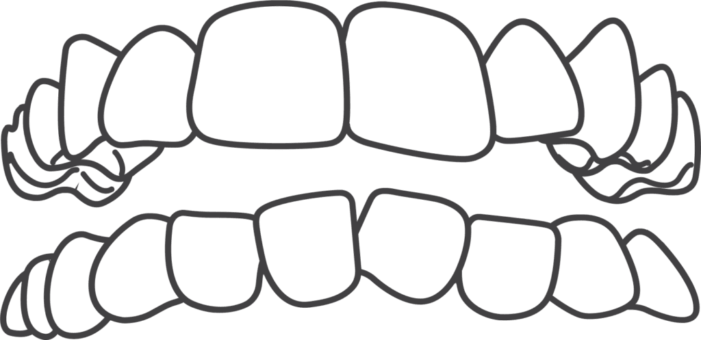 Dentes superiores e inferiores não encostam.